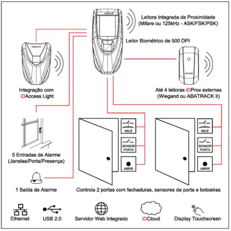 Com design compacto e moderno, o Controlador de Acesso iDAccess da Control iD é capaz de monitorar com praticidade e segurança a entrada e saída de pessoas de um determinado recinto. Com capacidade para o armazenamento de até 200 mil registros e 100 mil diferentes impressões digitais (com o software iDSecure Enterprise), o iDAccess pode ser programado para restrições personalizadas por grupos e horários. De operação simples e intuitiva, o Controlador de Acesso iDAccess permite autorizações por senha pessoal, cartão magnético, código de barras e biometria. Seu software embarcado dispensa instalações e possibilita a sincronização automática de backup em nuvem.