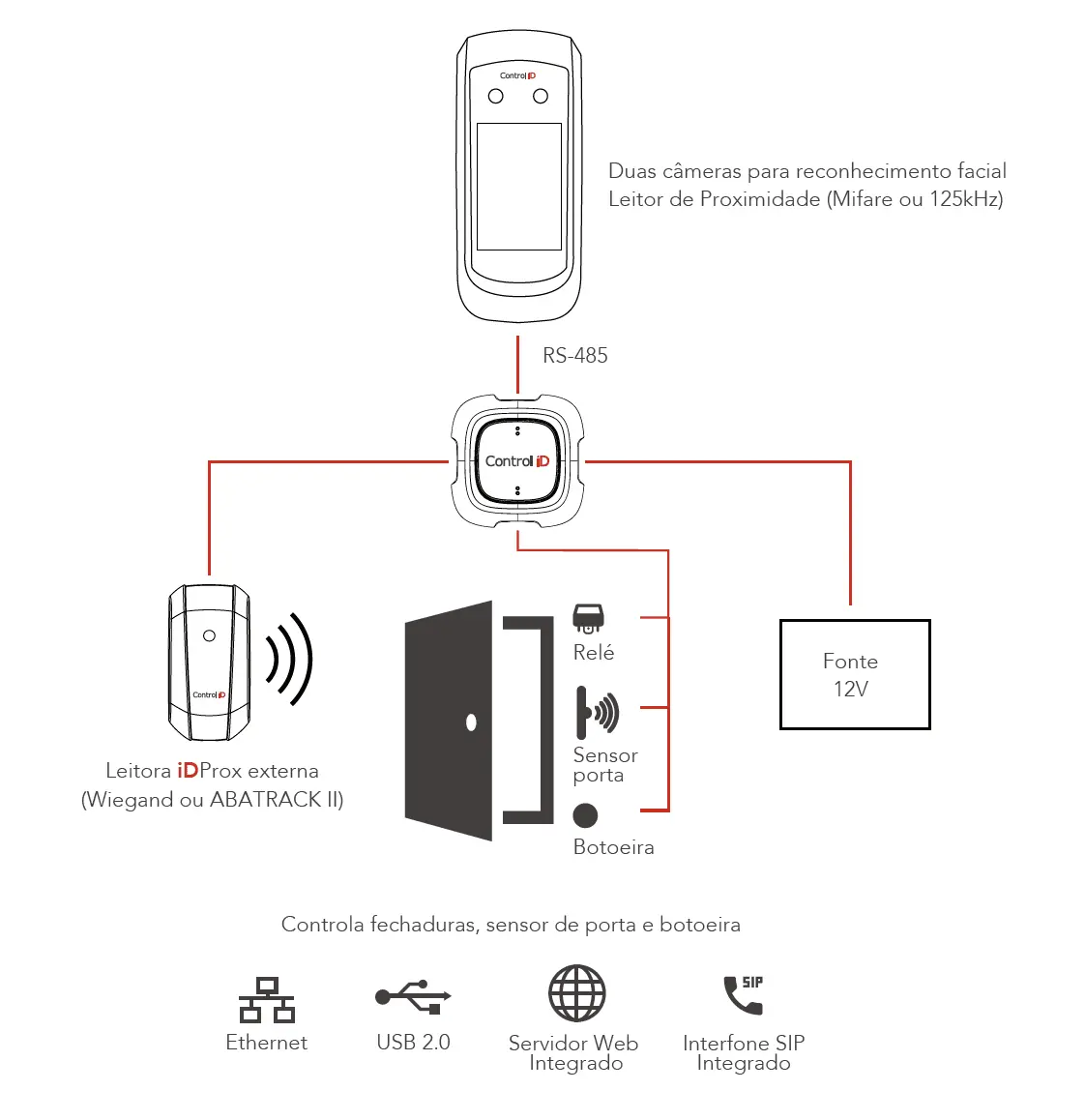 1 porta RS-485 para comunicação entre o módulo de acionamento externo e o terminal